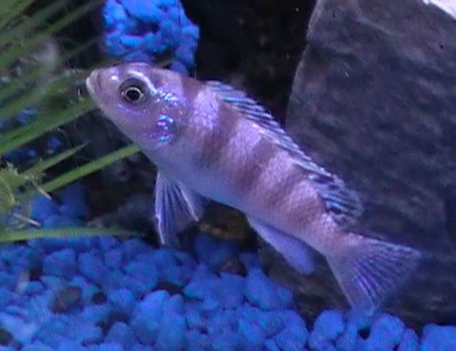 - Amazing Fish: Maylandia Lombardoi (Kenyi Cichlid) : Females And Juveniles Are Blue With Darker Blue Bars, While Mature Males Become Bright Yellow!